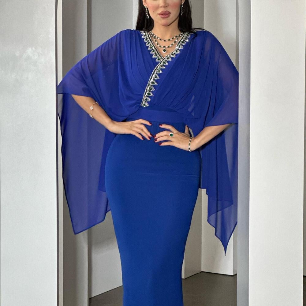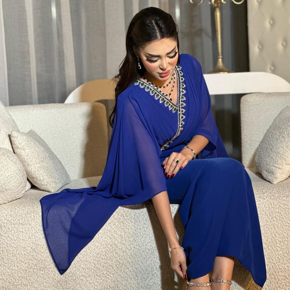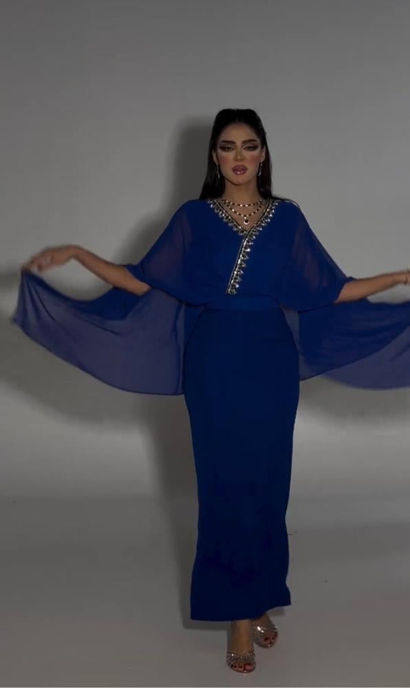 فستان شيفون ازرق يمنحك إطلالة ناعمة وفاخرة في جميع المناسبات والسهرات، مصنوع من خامات خفيفة وناعمة مع تصميم طويل وأنيق يبرز الأنوثة.